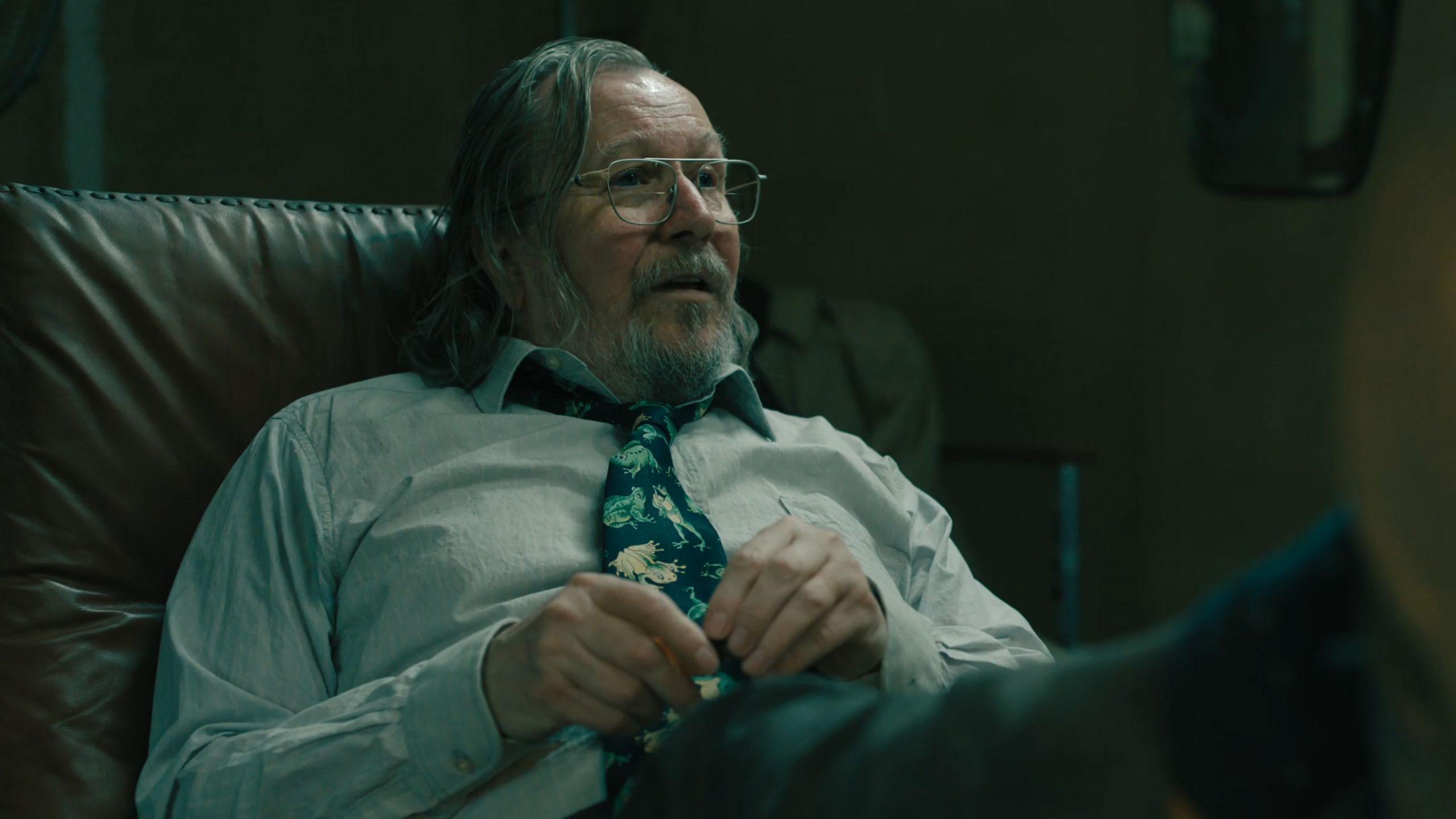 加里·奥德曼饰演的杰克逊·兰姆将双腿随意搭在杂乱不堪的办公桌边缘,袜子上的破洞用胶带勉强粘合,这一细节充满戏谑与自贬意味,恰似《流人》整部剧集的精神注脚:这里没有007式的风光无限,只有被情报系统遗弃的“失败者”在体制缝隙中挣扎求存。